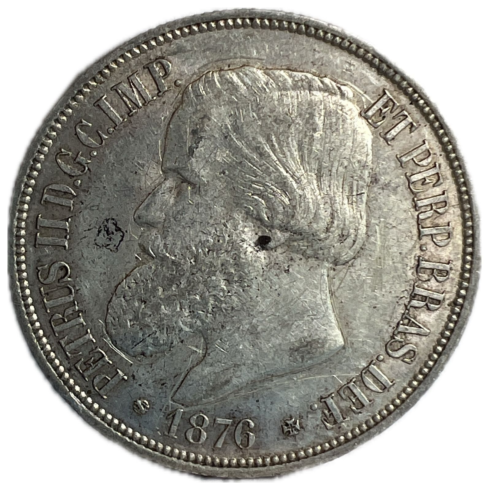 Anverso: O Busto do Imperador voltado à esquerda, sem o nome ou iniciais do gravador LUSTER abaixo do Busto. Legenda: PETRUS . II . D . G . C . IMP . ET . PERP . BRAS . DEF (D. Pedro II, com a graça de Deus imperador constitucional e perpétuo defensor do Brasil).